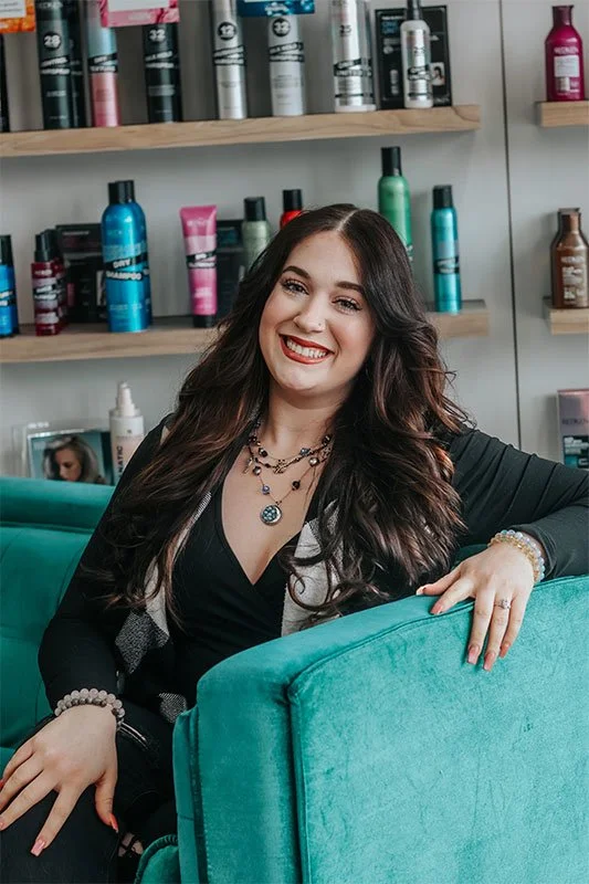 Behind the chair, Bri is passionate about all things color and is working toward specializing in both color services and extensions. Her mission is to help every guest feel confident, heard, and empowered—leaving the salon not only looking beautiful but feeling truly seen.